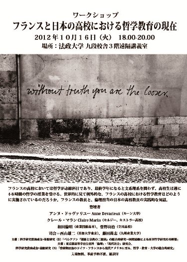 3 内容:フランスの高等学校の哲学教師と、都倫研から、それぞれ高校の哲学・倫理教育についての報告を行い、討論を深めます。